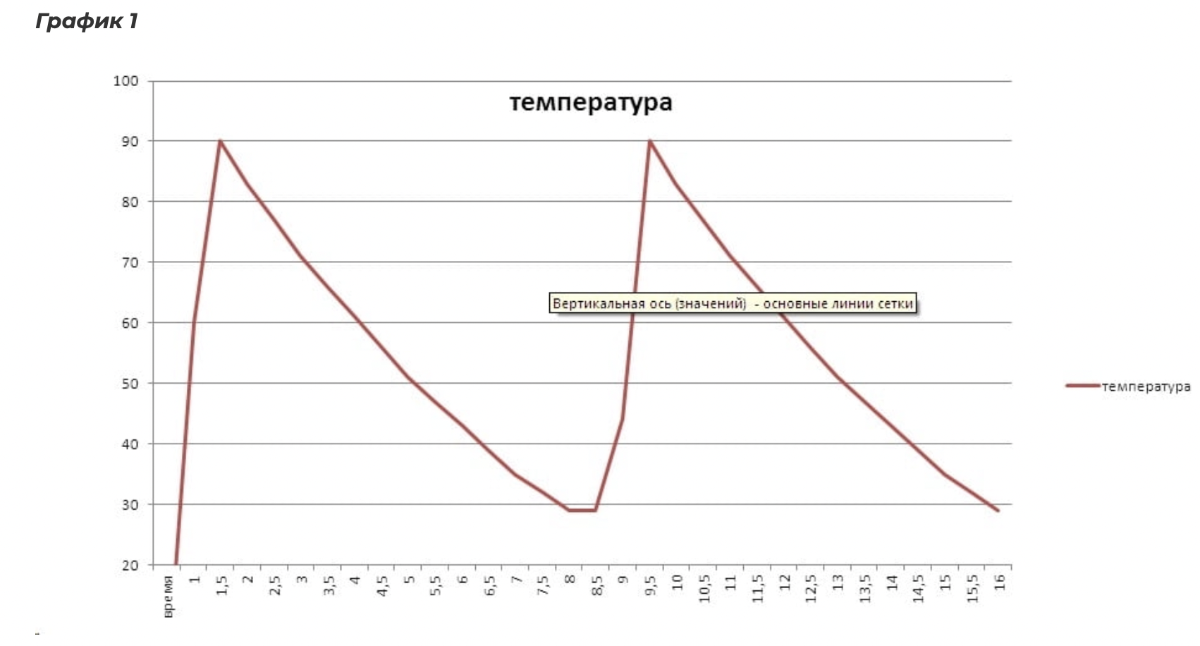 При этом для простых конструкций твердотопливных котлов остается нерешенной задача по упрощению обслуживания и управлению процессом горения. На рисунке 1 показан режим работы котлов прямого горения. При этом температура теплоносителя значительно поднимается при розжиге котла и падает после прогорания. Температура в помещении так же меняется порядка пяти градусов в течение дня, что может составлять неудобства для жильцов.