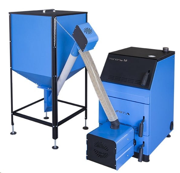 Отличие автоматических котлов в том, что в топочную камеру топливо загружается шнековым механизмом под управлением контроллера.