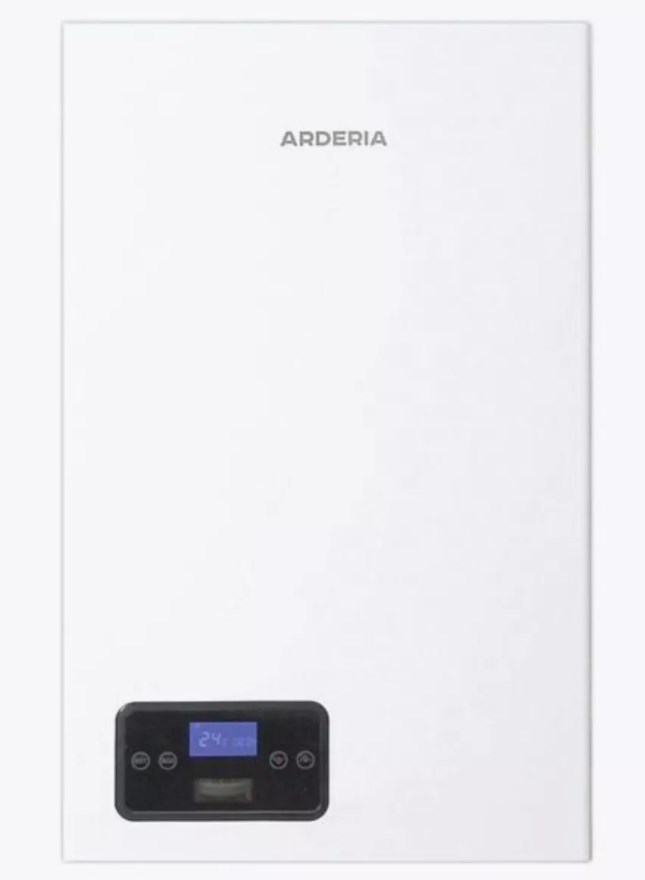 Электрокотлы Arderia сочетают в себе экономичность, высокое качество и надежность. При минимальных габаритах (635х390х190 мм) устройство включает в себя: бак, трехскоростной циркуляционный насос, группу гидравлической безопасности, кран подпитки и электронное управление с самодиагностикой.