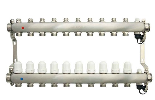 Уз.колл.гр. нерж сталь 10 вых. в сборе c термостатическими и запорными клапанами ONDO (OKGSP010)