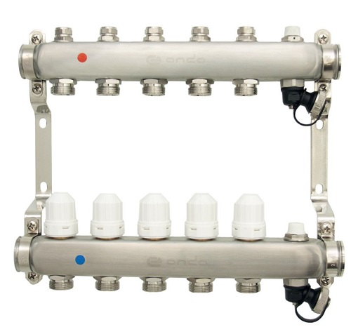 —Уз.колл.гр. нерж сталь 5 вых. в сборе c термостатическими и запорными клапанами ONDO (OKGSP005)
