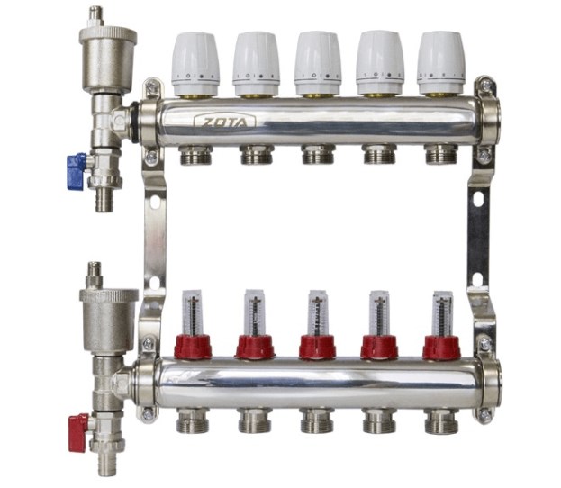 Коллекторы нержавеющие ZOTA комплектуются регулируемыми кронштейнами (175-240 мм) для крепления их к стене или в коллекторном шкафу. Применение коллекторов нержавеющих ZOTA – это экономия средств и времени монтажа, возможность свести к минимуму вероятность проектных и монтажных ошибок. Оборудование компактно, надежно, просто в эксплуатации и монтаже.