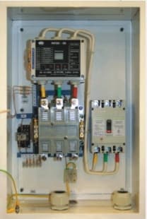Внутри шкафа смонтирована пусковая и защитная аппаратура.