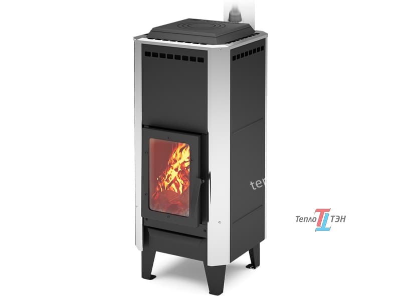 - Дверца с жаростойким стеклом позволяет любоваться игрой пламени в топке.