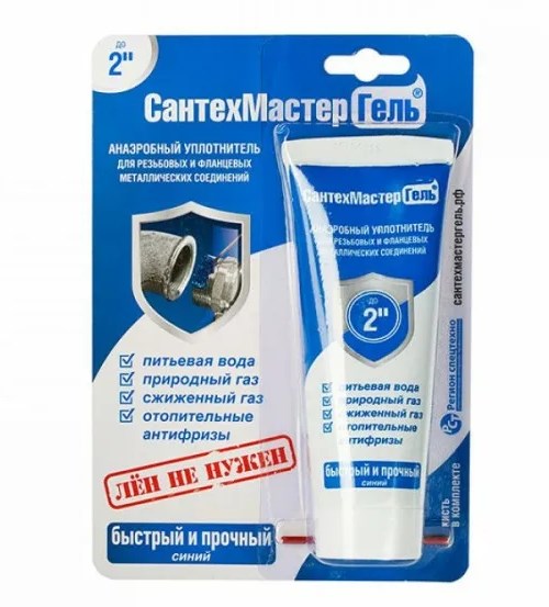 СантехМастер Гель Синий 60 г — это резьбовой герметик для сантехники со средней степенью фиксации соединения. Данный состав рекомендован к использованию для герметизации металлических резьб, фитингов и фланцев. Используется для соединений диаметром до 2". Соединение, собранное на данный гель поддается демонтажу с использованием инструмента.