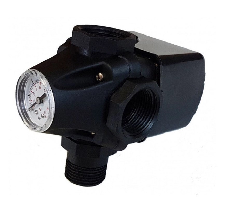 Автоматика, реле давления для насосных станций предназначено для управления давлением воды в электрических насосах. Комплектация: Автоматика, манометр, пятерник. Автоматика- Реле давления - предназначено для автоматизации работы насоса, включая его при понижении давления в системе водоснабжения ниже установленного предела, и отключая насос при достижении верхнего установленного предела. Принцип работы: После прекращения разбора воды потребителями давление воды в системе растет до верхнего предела настройки реле давления. Реле давления выключает насос. При потреблении вода мгновенно поступает из системы под давлением. По мере расхода воды давление в системе падает до нижнего предела настройки реле давления, после чего реле давления включает насос.